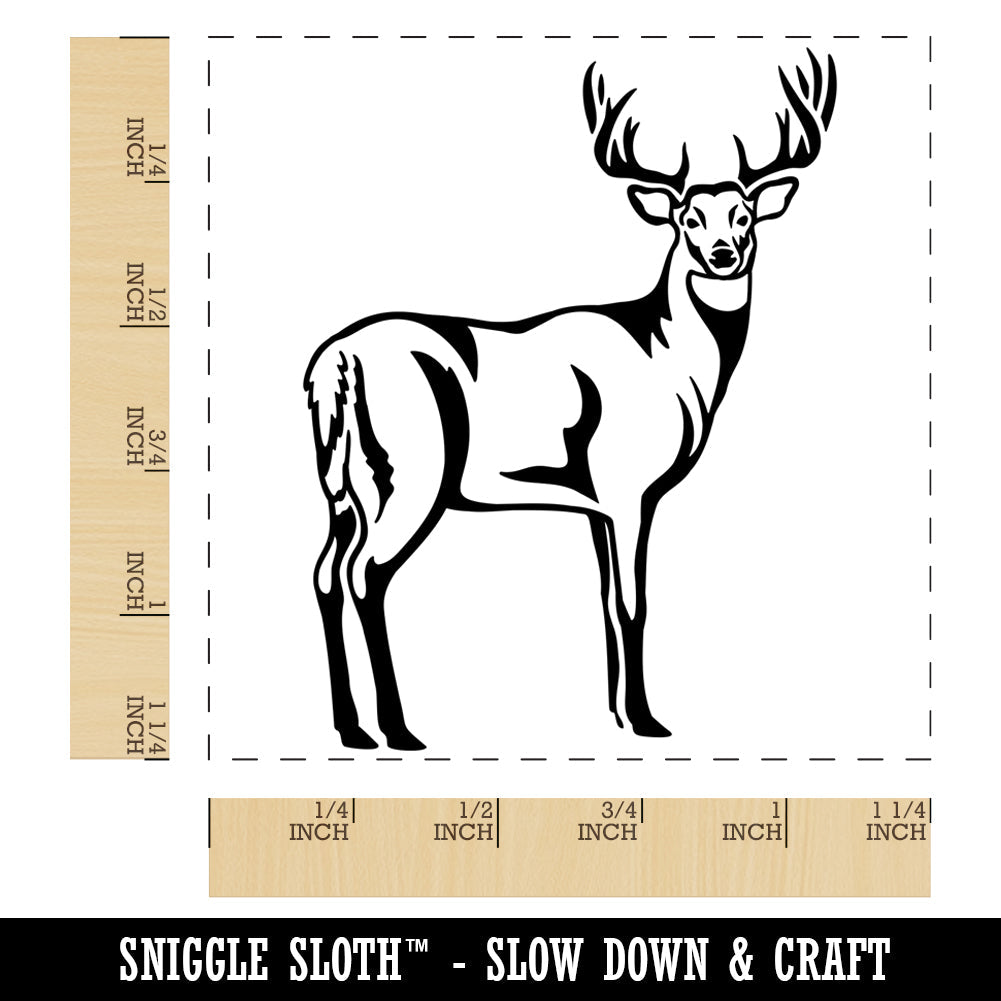 White-Tailed Deer Buck Hunting Forest Animal Square Rubber Stamp for Stamping Crafting