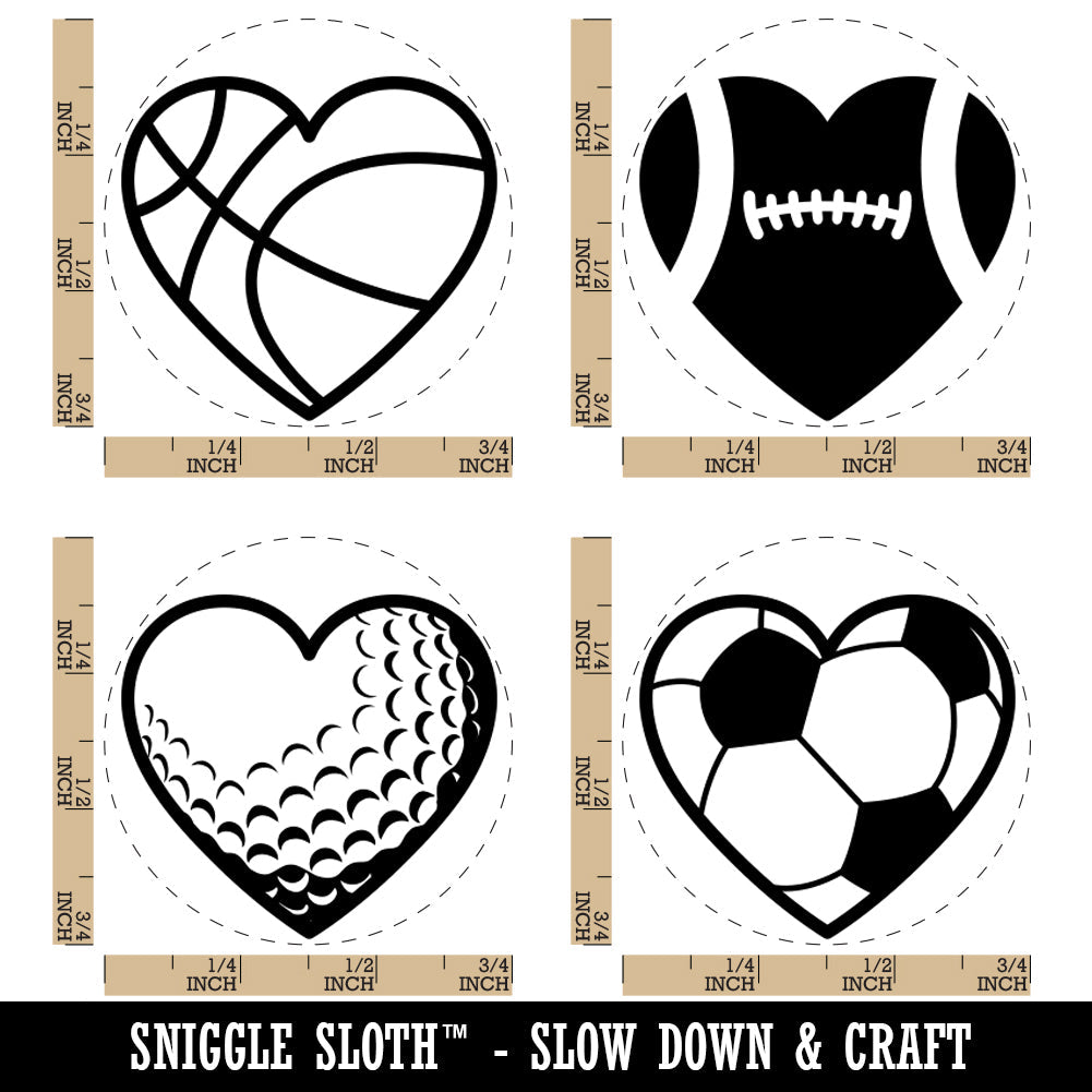 Heart Shaped Sports Soccer Golf Football Basketball Rubber Stamp Set for Stamping Crafting Planners