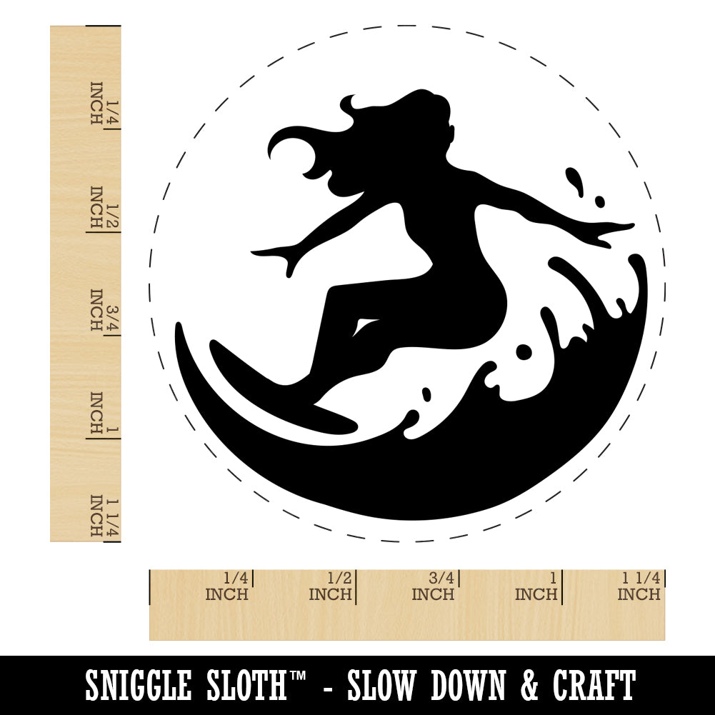 Surfing Surfer Girl on Wave Rubber Stamp for Stamping Crafting Planners