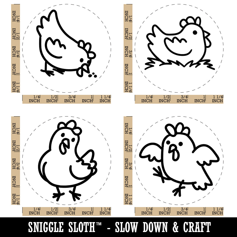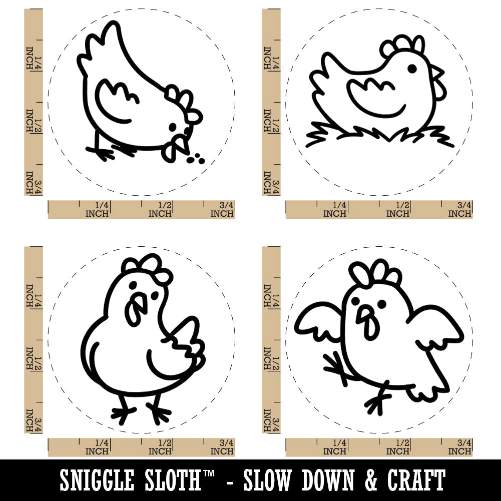 Cartoon Chicken Hen Pecking Sitting Rubber Stamp Set for Stamping Crafting Planners