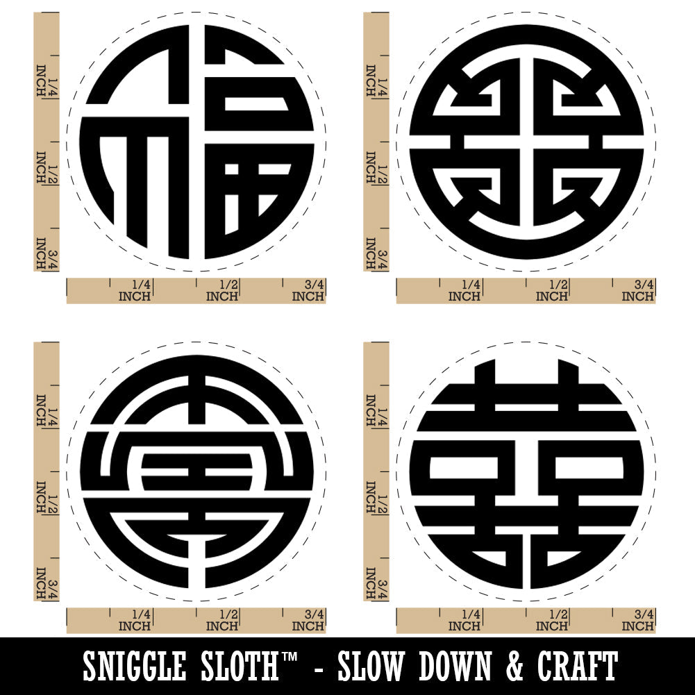 Chinese Symbols Happiness Longevity Wealth Good Luck Rubber Stamp Set for Stamping Crafting Planners