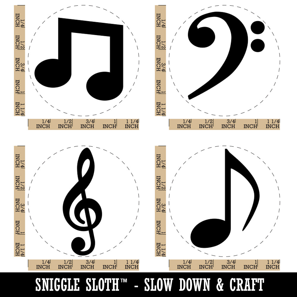 Music Musical Notes Treble Bass Clef Eighth Symbols Rubber Stamp Set for Stamping Crafting Planners