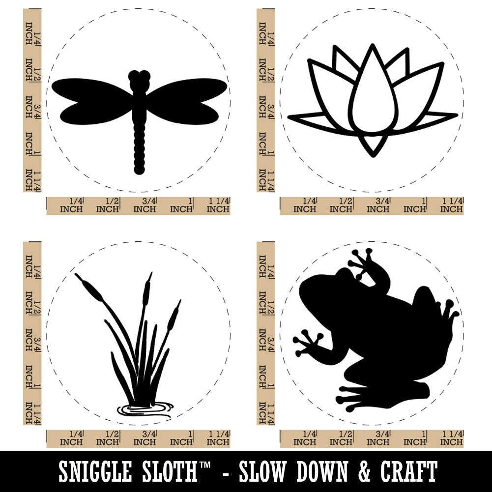 Pond Life Cattails Water Lily Dragonfly Frog Rubber Stamp Set for Stamping Crafting Planners