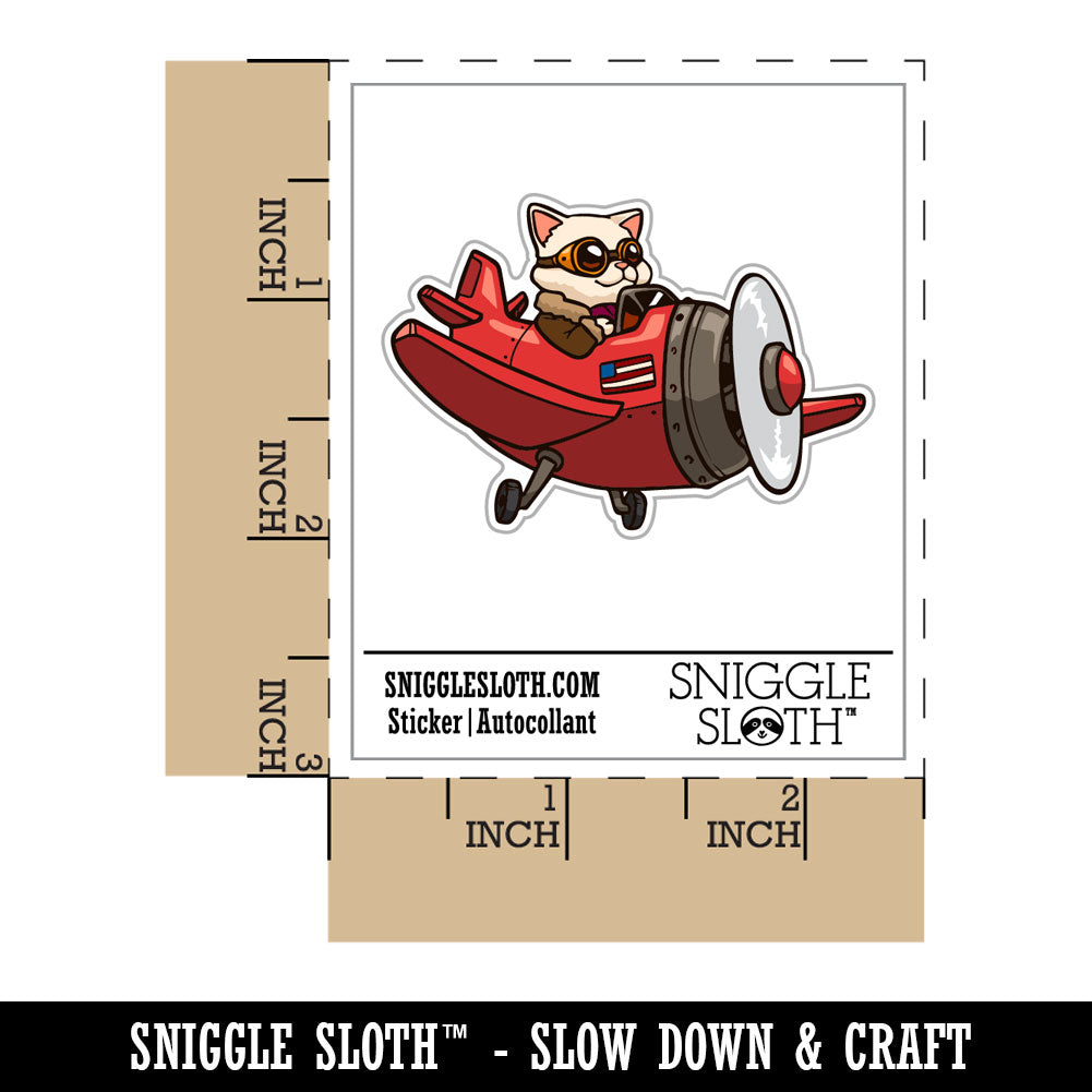 Cartoon Airplane Cat Pilot Aircraft Waterproof Vinyl Phone Tablet Laptop Water Bottle Car Window Bumper Decal Sticker Set - 5 Pack