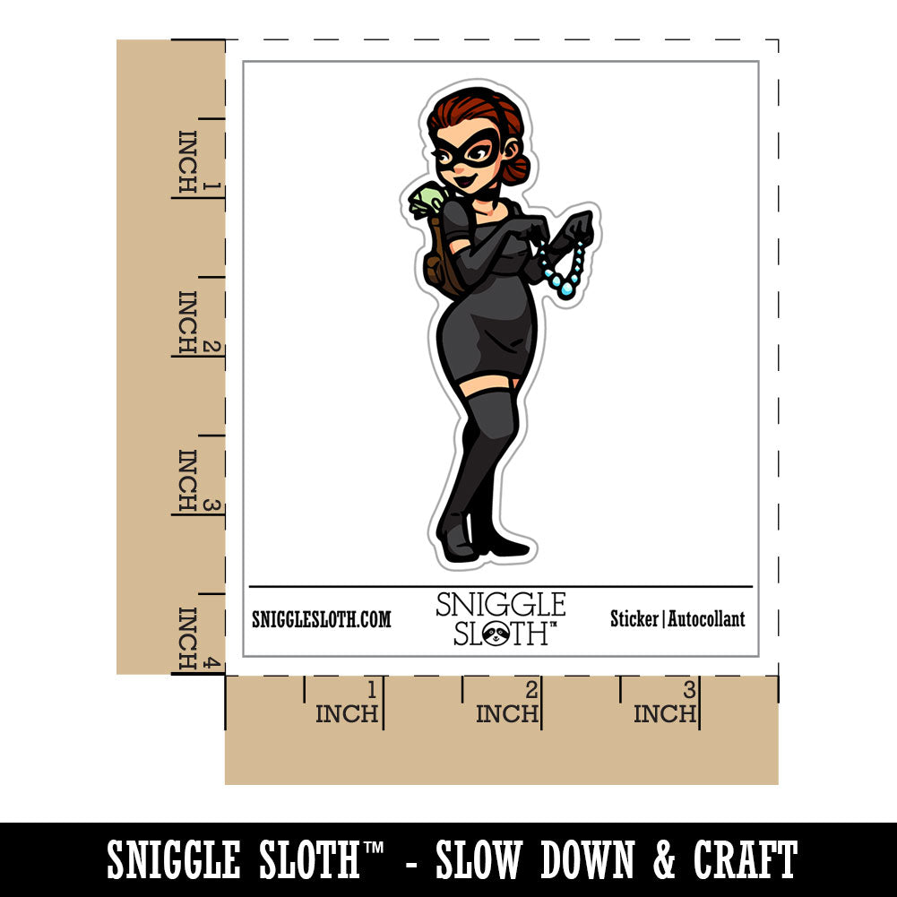 Water Bottle Sticker Set Cat Burglar Thief Woman Stealing Necklace Cute Waterproof Vinyl Stickers Pack Decal, Skateboard, Laptop, Car, Window, Bumper - 5 Pack