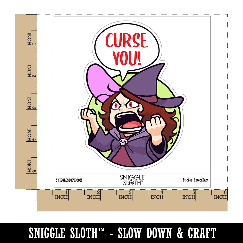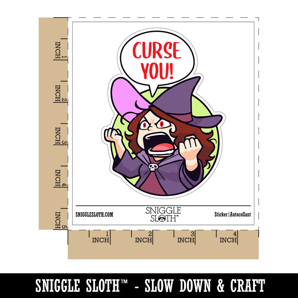 Water Bottle Sticker Set Curse You Angry Cartoon Witch Halloween Cute Waterproof Vinyl Stickers Pack Decal, Skateboard, Laptop, Car, Window, Bumper - 5 Pack