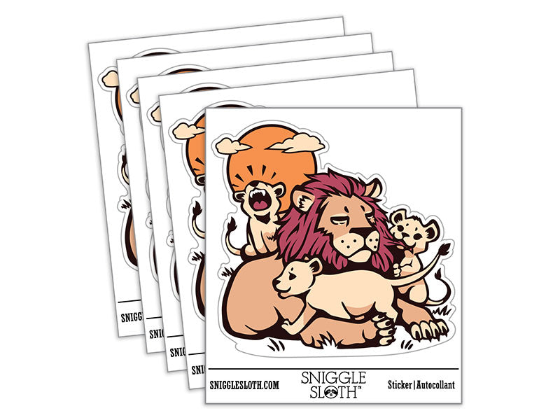 Father Lion with Pride Cubs Waterproof Vinyl Phone Tablet Laptop Water Bottle Car Window Bumper Decal Sticker Set - 5 Pack