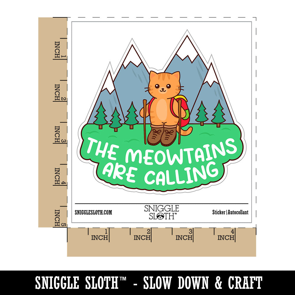 The Meowtains Are Calling Hiking Cat Waterproof Vinyl Phone Tablet Laptop Water Bottle Car Window Bumper Decal Sticker Set - 5 Pack