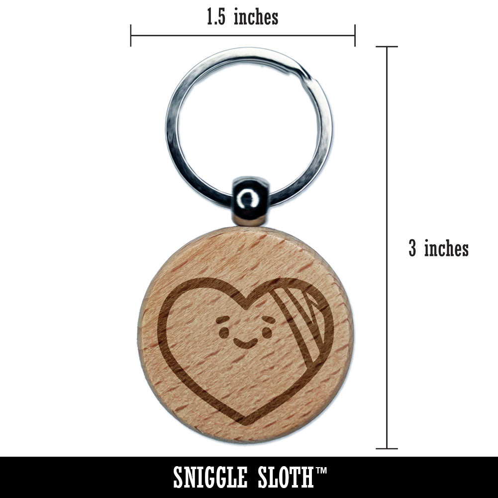 Hurt Heart Bandage Recover Relationship Engraved Wood Round Keychain Tag Charm