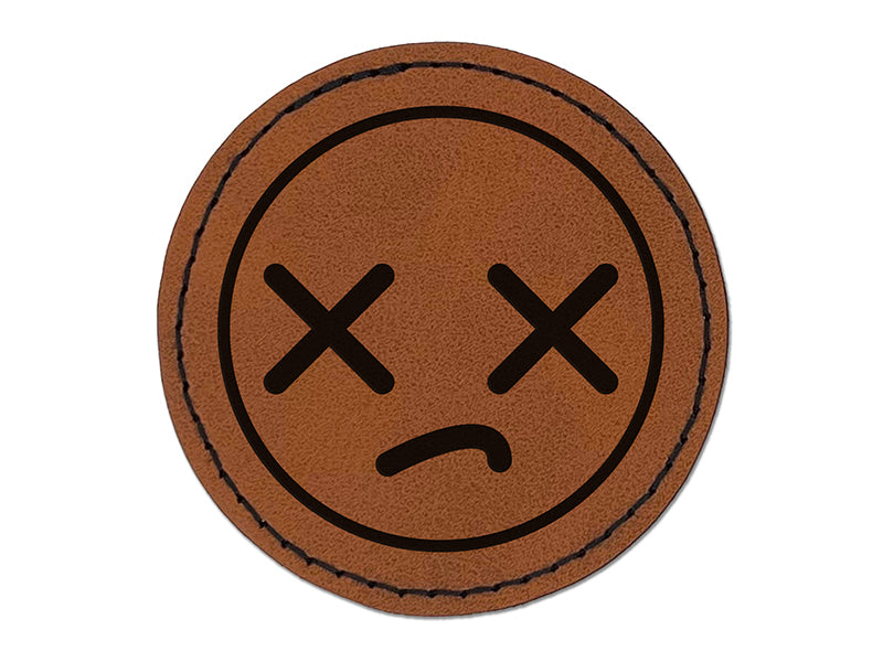 Kawaii Cute Dead X Eyes Face Round Iron-On Engraved Faux Leather Patch Applique - 2.5"
