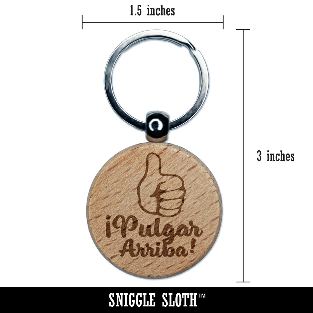 Pulgar Arriba Thumbs Up Spanish Compliment Engraved Wood Round Keychain Tag Charm