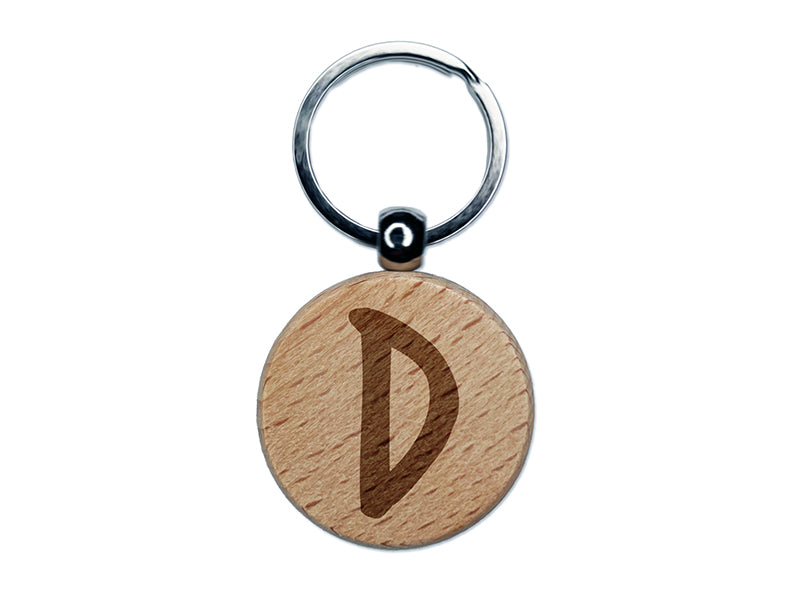 Letter D Uppercase Felt Marker Font Engraved Wood Round Keychain Tag Charm