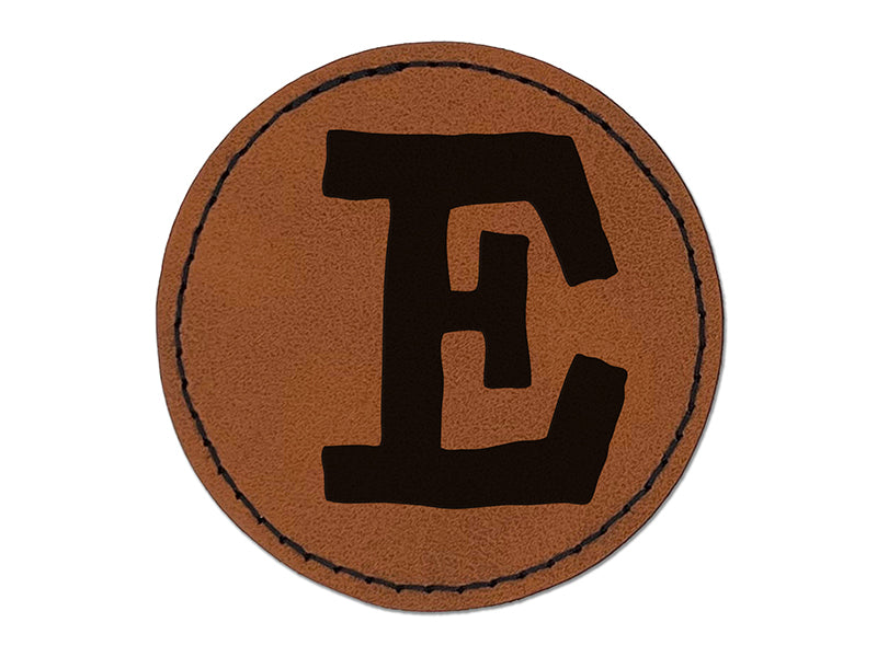Letter E Uppercase Cute Typewriter Font Round Iron-On Engraved Faux Leather Patch Applique - 2.5"