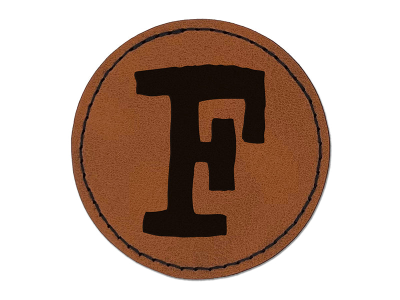 Letter F Uppercase Cute Typewriter Font Round Iron-On Engraved Faux Leather Patch Applique - 2.5"
