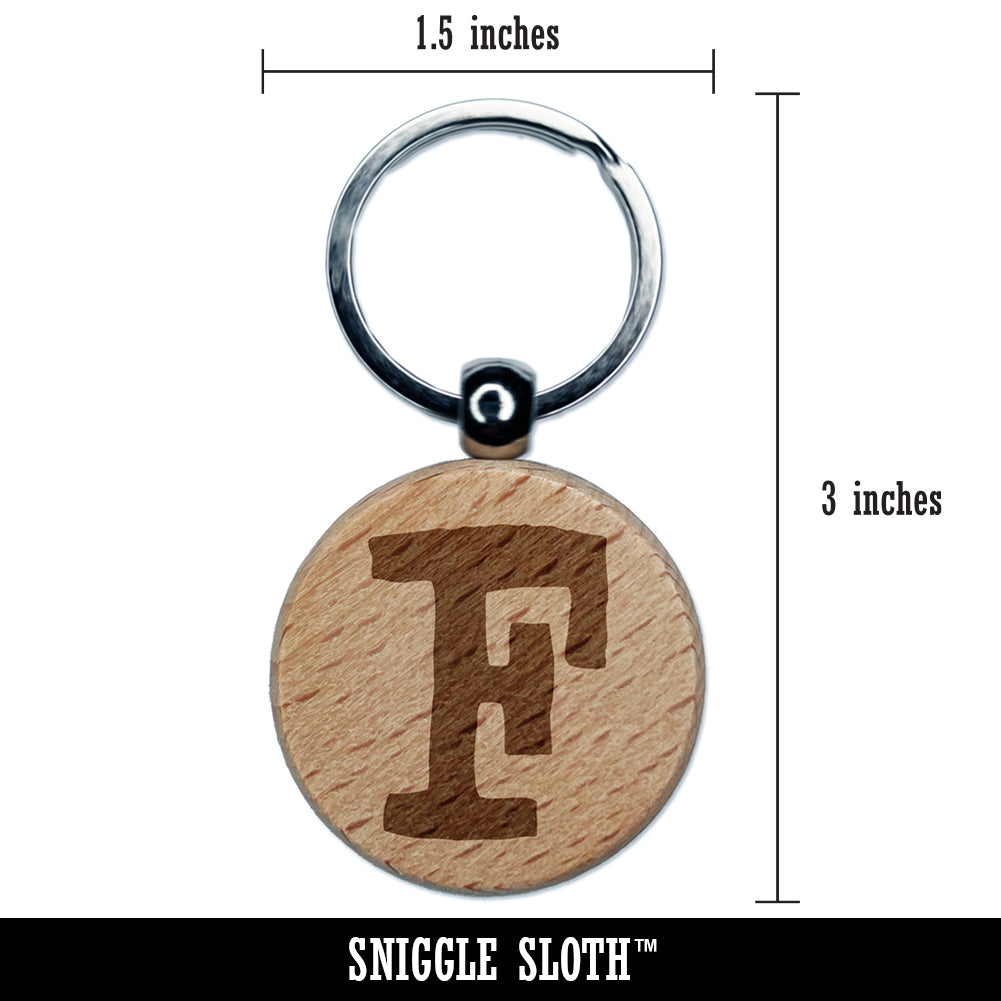 Letter F Uppercase Cute Typewriter Font Engraved Wood Round Keychain Tag Charm