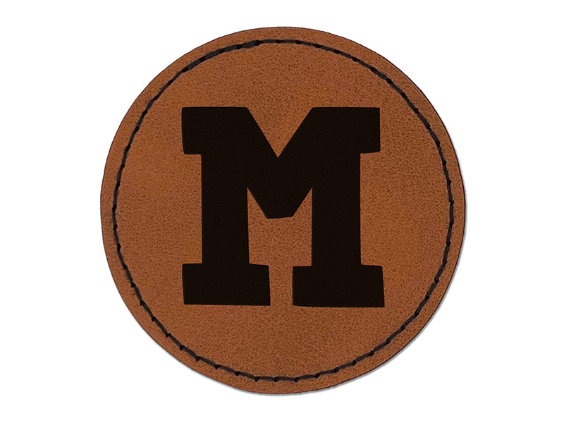 Letter M Uppercase Fun Bold Font Round Iron-On Engraved Faux Leather Patch Applique - 2.5"