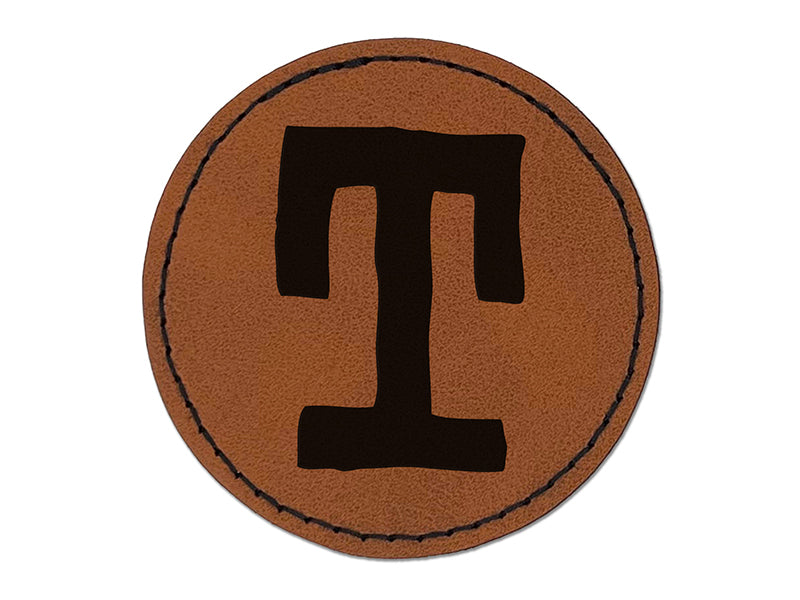 Letter T Uppercase Cute Typewriter Font Round Iron-On Engraved Faux Leather Patch Applique - 2.5"