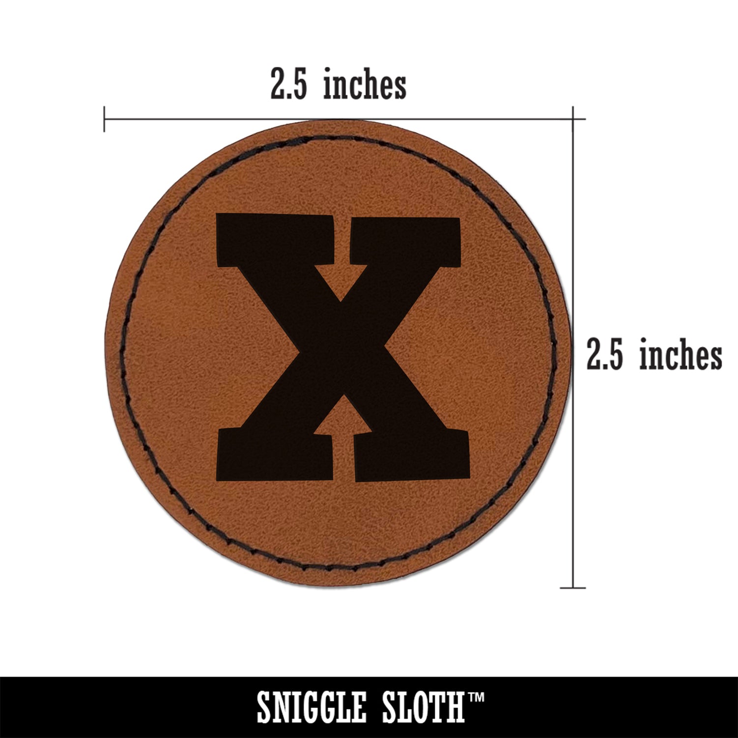 Letter X Uppercase Fun Bold Font Round Iron-On Engraved Faux Leather Patch Applique - 2.5"