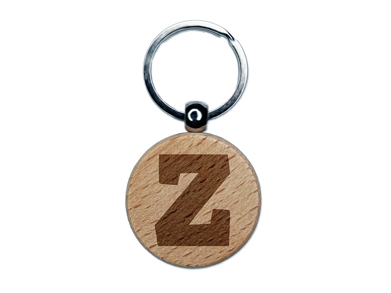 Letter Z Uppercase Fun Bold Font Engraved Wood Round Keychain Tag Charm