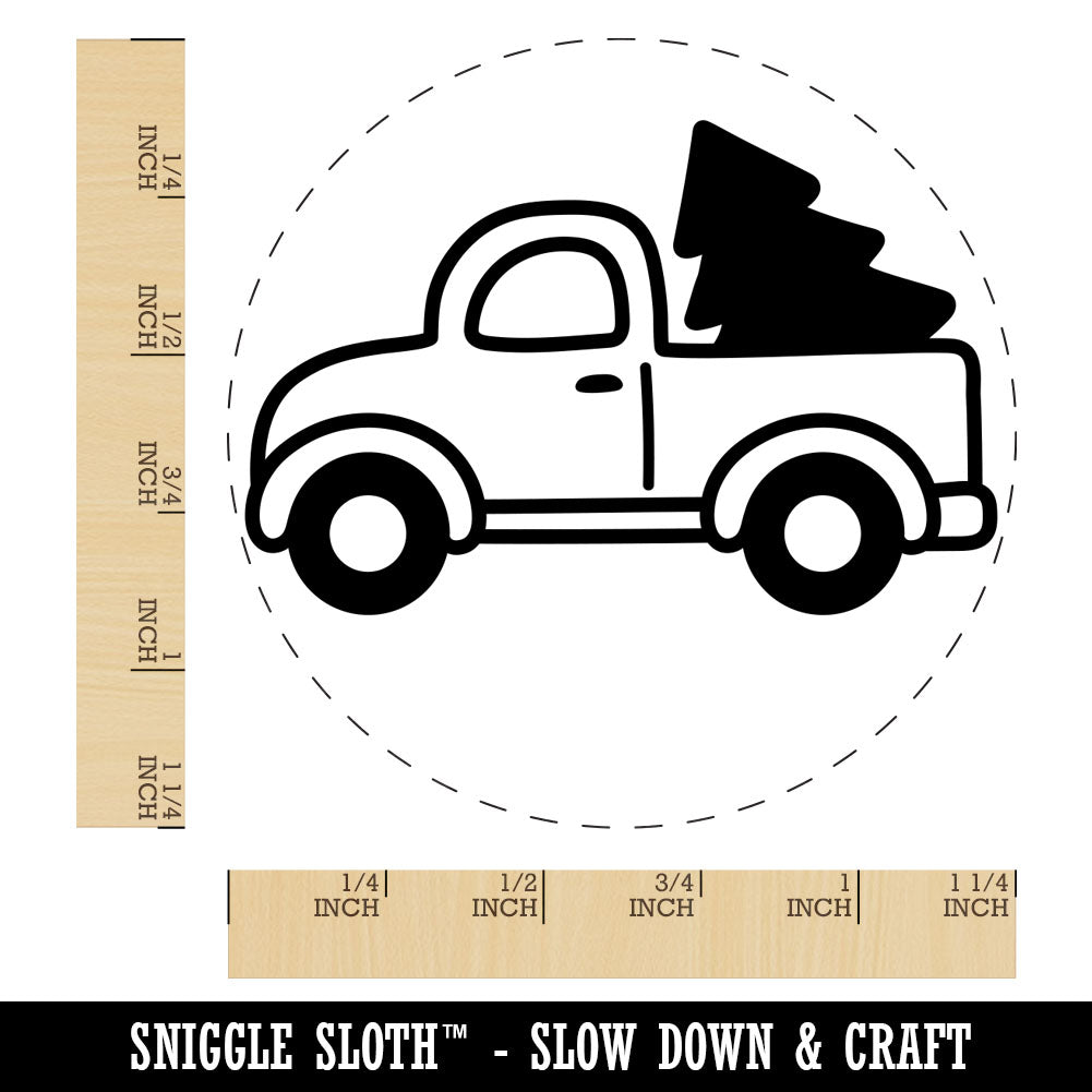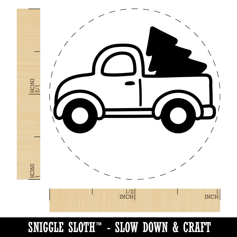 Cute Truck with Christmas Tree Rubber Stamp for Stamping Crafting Planners