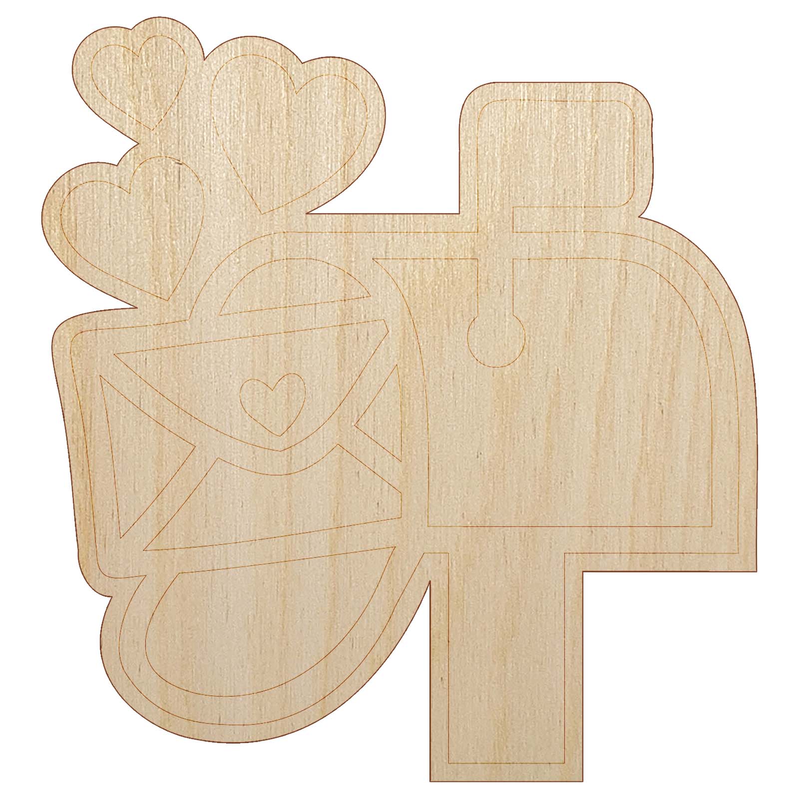 Cute Mailbox with Hearts Unfinished Wood Shape Piece Cutout for DIY Craft Projects