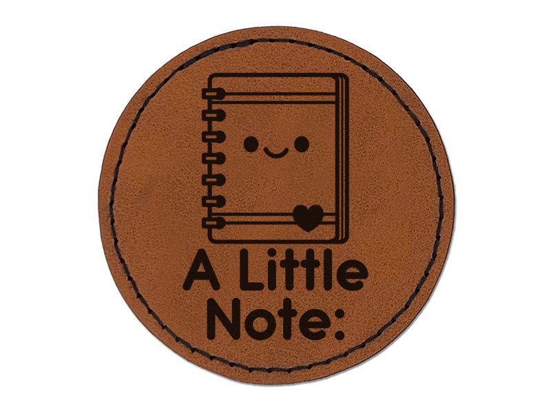 A Little Note Notebook Student Teacher School Round Iron-On Engraved Faux Leather Patch Applique - 2.5 Inch - Brown
