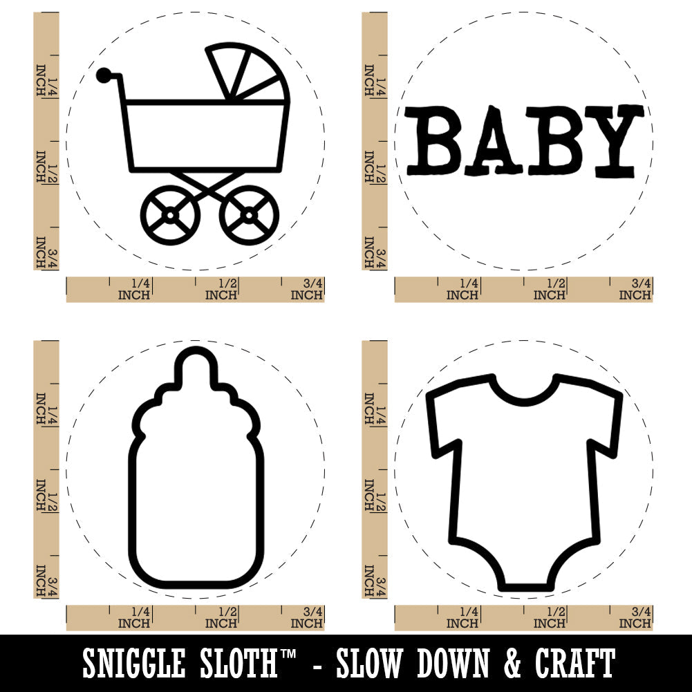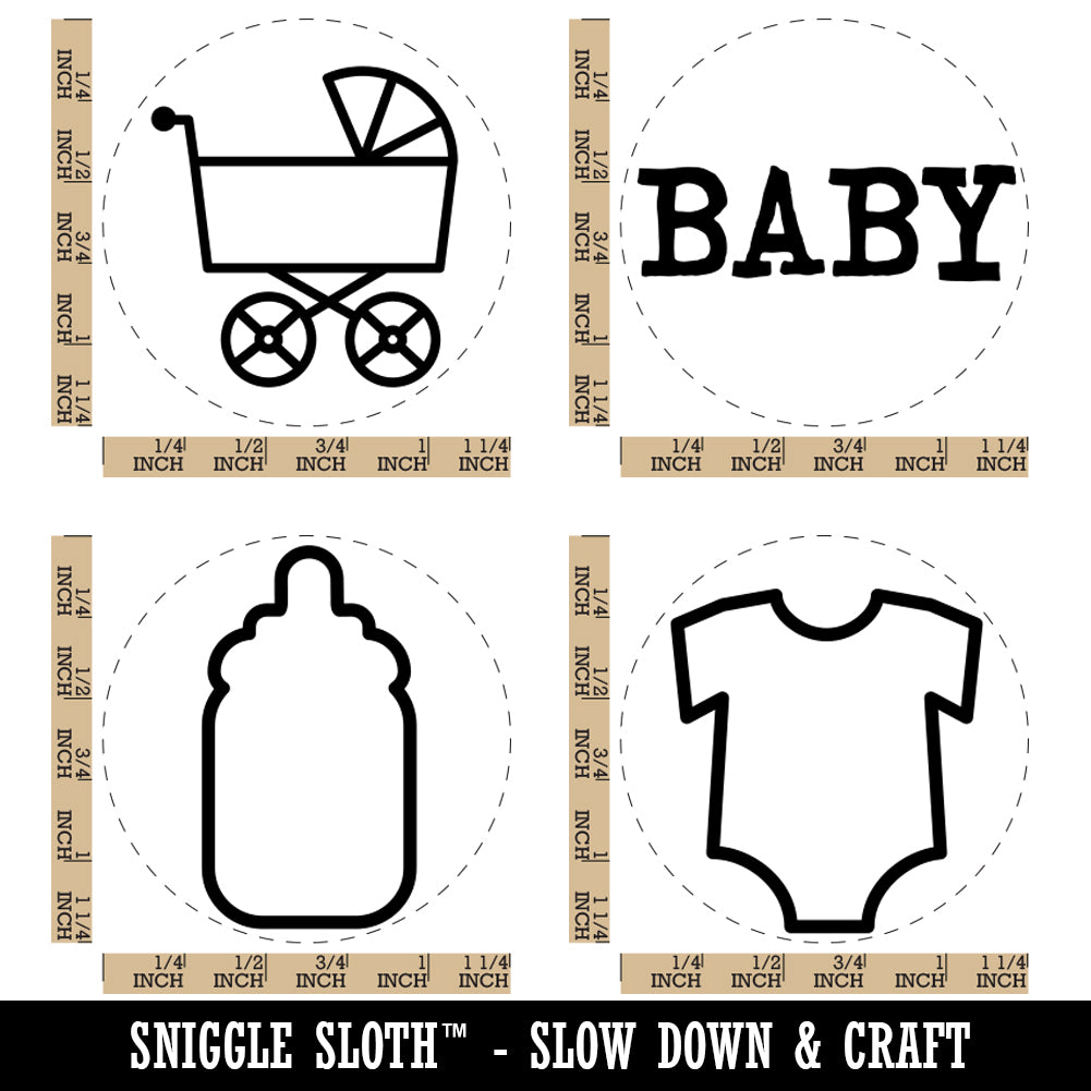 Baby Outfit Bottle Carriage Text Rubber Stamp Set for Stamping Crafting Planners