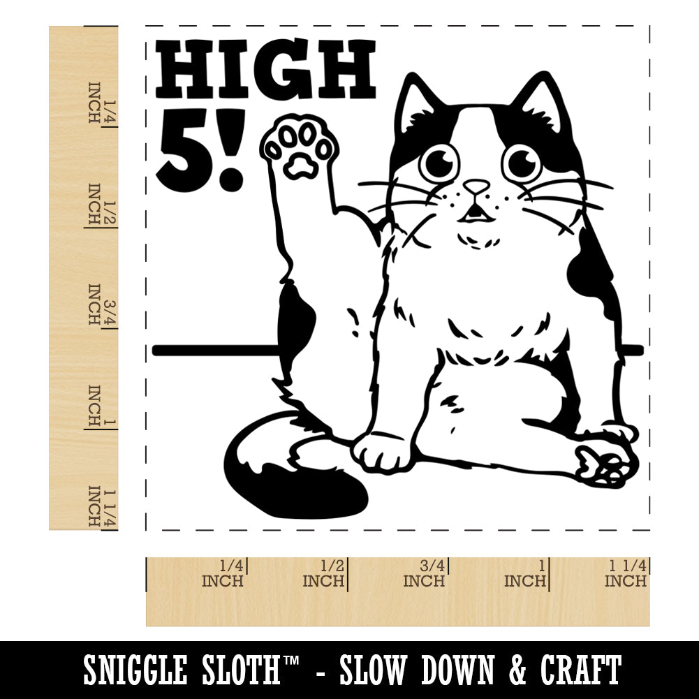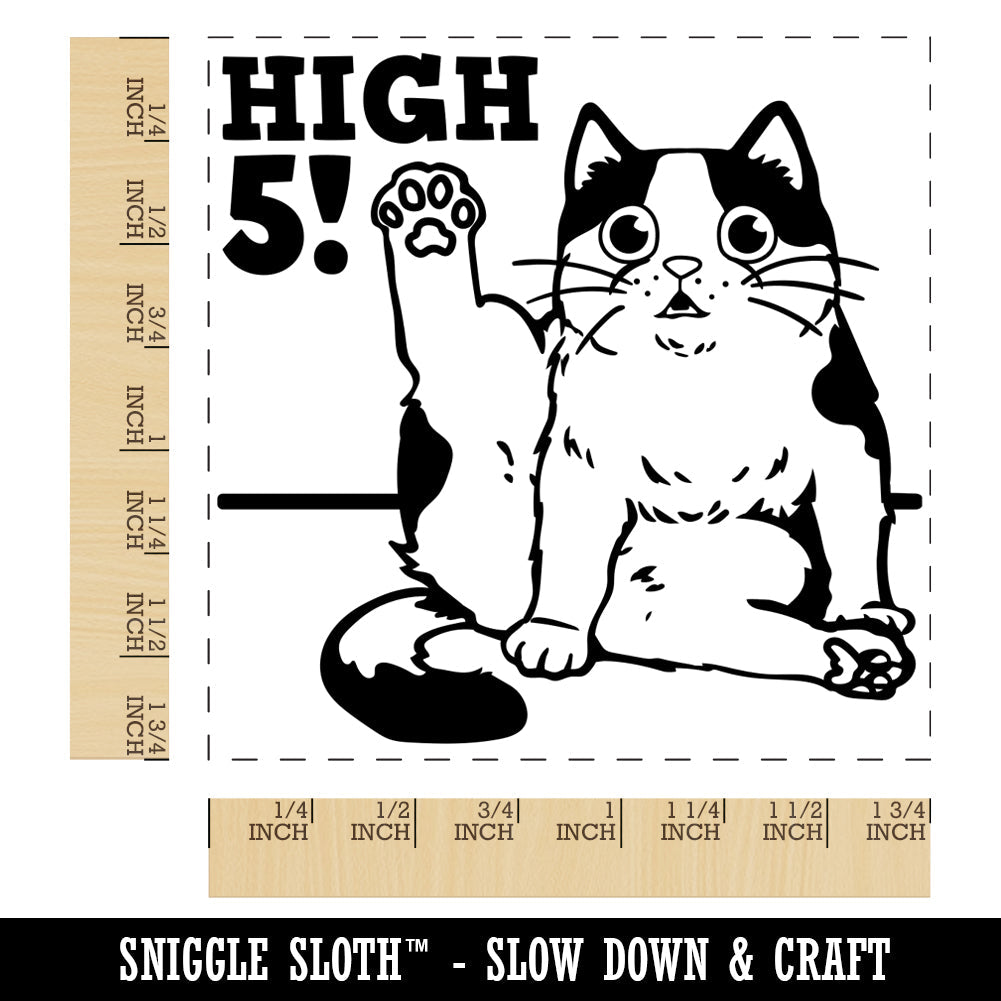 Cat Stretching Leg High Five Square Rubber Stamp for Stamping Crafting
