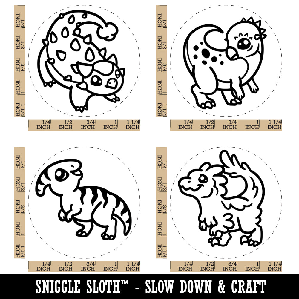Chibi Style Dinosaurs Raptor Ankylosaurus Rubber Stamp Set for Stamping Crafting Planners