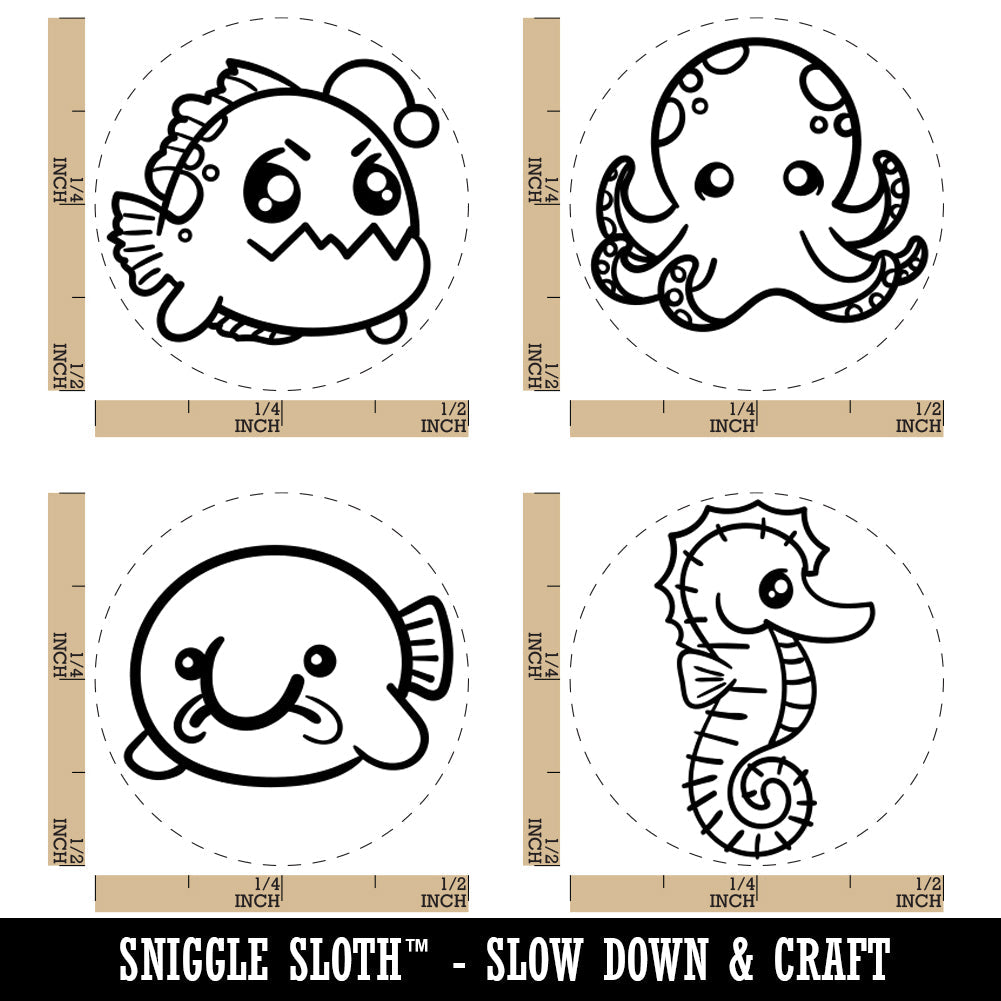 Kawaii Ocean Octopus Anglerfish Seahorse Blobfish Rubber Stamp Set for Stamping Crafting Planners
