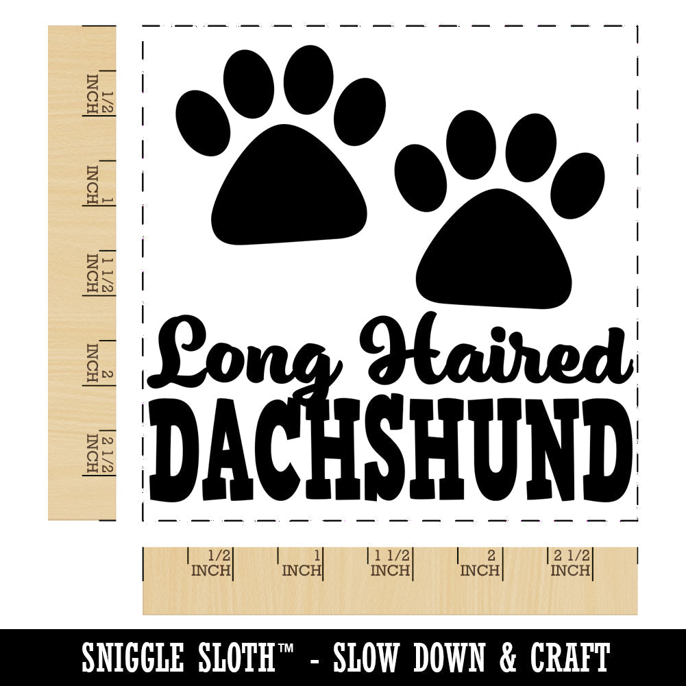 Long Haired Dachshund Dog Paw Prints Fun Text Square Rubber Stamp for Stamping Crafting