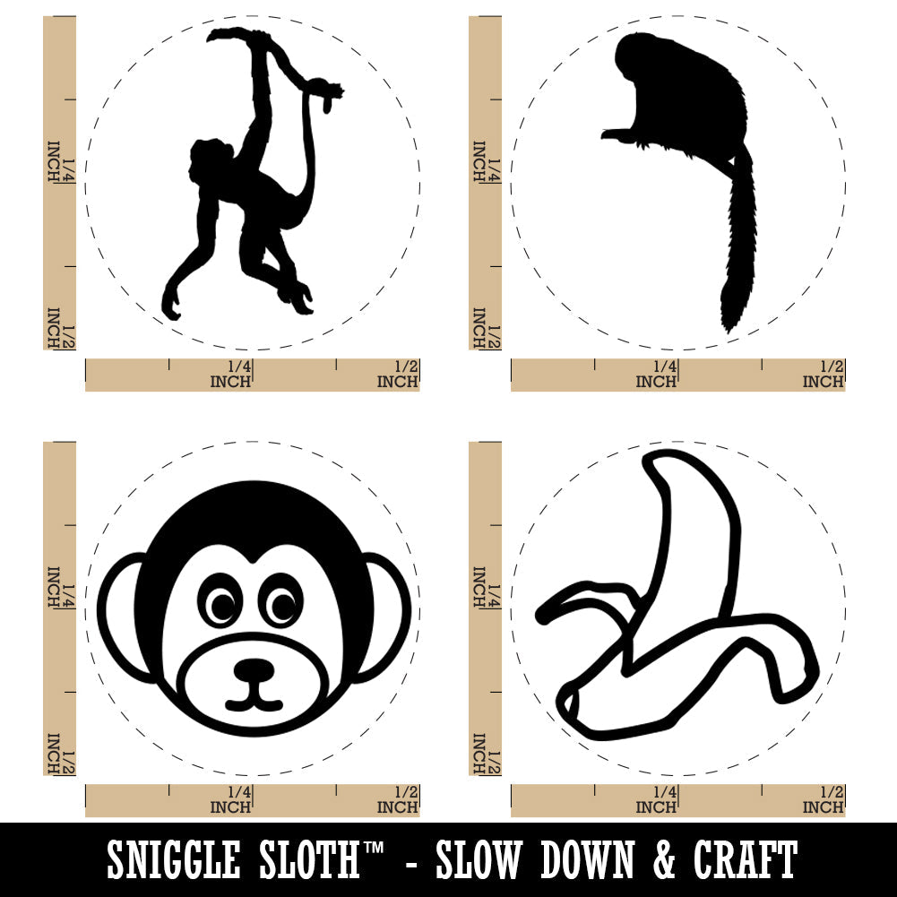 Monkey Cute Squirrel Hanging Banana Rubber Stamp Set for Stamping Crafting Planners