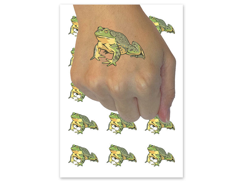 Realistic American Bullfrog Amphibian Frog Temporary Tattoo Water Resistant Fake Body Art Set Collection (1 Sheet)