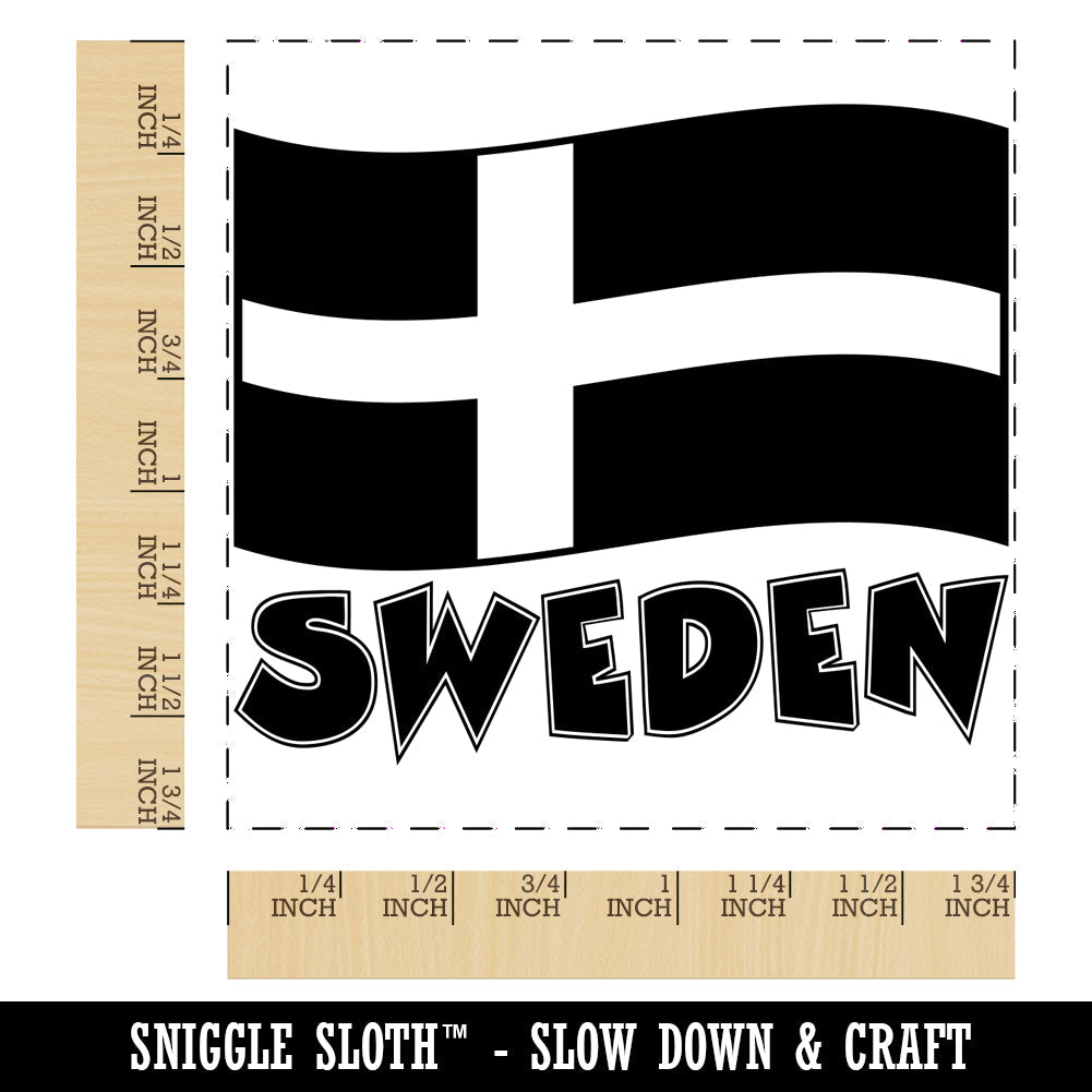 Sweden with Waving Flag Cute Square Rubber Stamp for Stamping Crafting